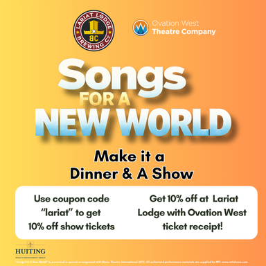 After the show, join the cast of Songs for a New World for a chance to find out what it’s like to explore these “New World Moments” in Jason Robert Brown’s musical. Moderated by the Ovation West’s Resident Director, Tim Kennedy, the talk will give the audience a chance to explore the themes of the piece as well as ask questions of the cast about their experience with the production. Join us for a casual conversation and get to know these talented local performers!